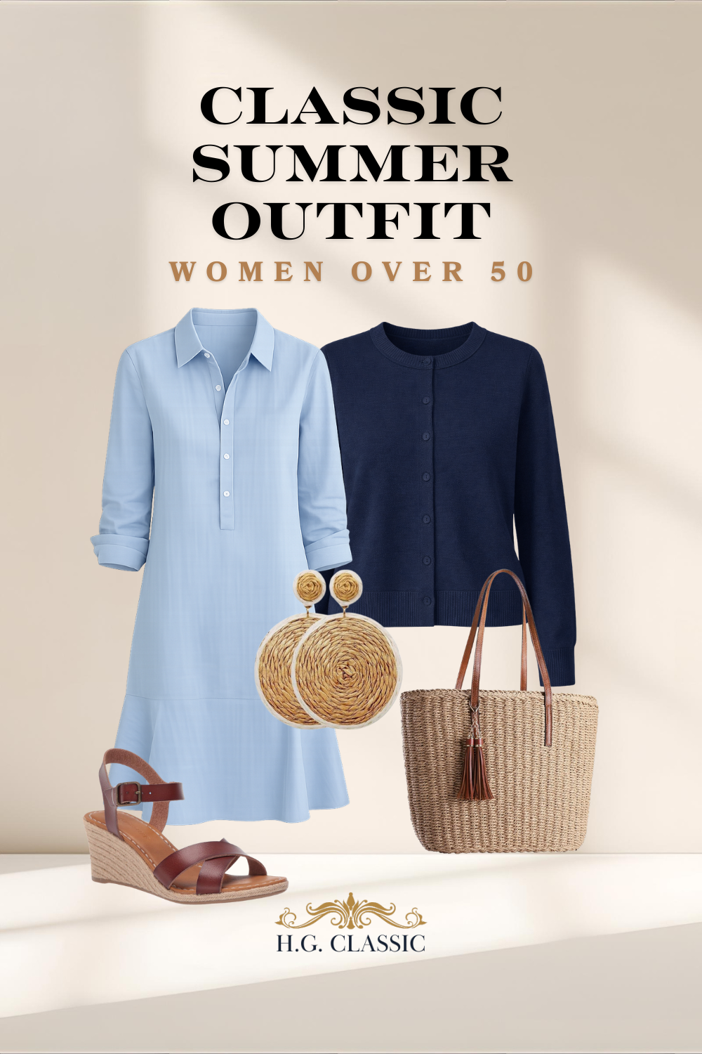 When choosing classic summer colors, I personally think of navy blue, light blue, Kelly or emerald green, red, yellow, white and black. That said, some people prefer lighter tints or tones for summer, or those colors don’t suit them. It’s more important to complement your skin, hair and eyes than it is to follow someone else’s idea of the must-have wardrobe colors, so though I’ve attached some classic summer outfit ideas, feel free to use these as templates and select the version/color of the item that best suits you. (I usually - but not always - try to limit the number of main colors in each outfit to three or less, unless the clothing item itself is multicolored.)